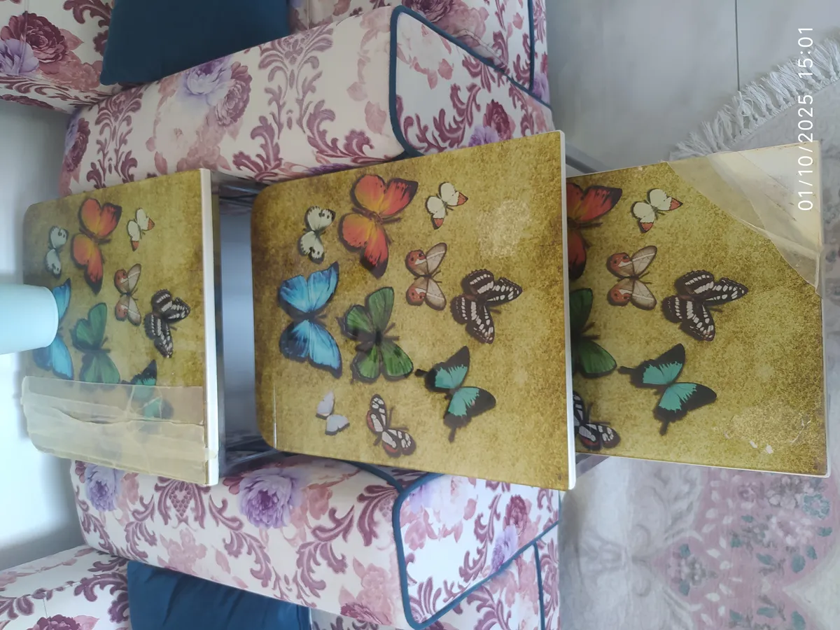 üzeri cam üçlü sehpa ikisinin cami hafif kırıktır biri sağlamdır uygun fiyata verilecektir
